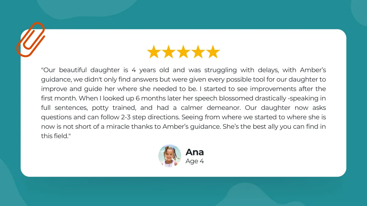 At each session, ongoing education is provided along with a clear framework for what to focus on next and dedicated time for questions and clarification. Families aren’t left to figure things out on their own or piece information together between appointments.
